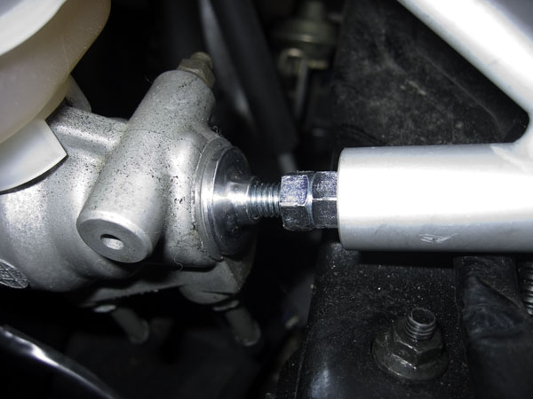 最初は純正の油圧スイッチ取付位置から耐圧ホースで油圧を取り出して分岐アダプタを介して純正スイッチと並列にセンサを取付けてみました。エンジン本体にオイルが供給される直前ですから油圧を採る位置としては理想に近いのですがセンサをきちんと固定するのに面倒があります。仮固定でメータの動作は確認できたのですが今ひとつしっくりと来ません。